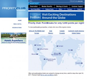 L’offre Point Breaks de Priority Club (Intercontinental, Holiday Inn, Crowne Plaza…) ont été mis à jour hier et sont disponibles jusqu’au 30 avril 15mai. A 5.000 points par nuit seulement c’est 67%-80% moins cher que d’habitude.  Il y’a que 3 hôtels Intercontinental sur la liste (Costa Rica, Jordan, et Mexique), mais il y a 107 hôtels en tout. Voici les liens chez Loyalty Traveler pour une liste sur une page, ou directement chez Priority Club ou il faut cliquer sur chaque région.