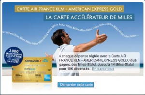 Par rapport à nos amis Américains le moyen de gagner des miles avec des cartes bancaires est fortement limité en France.  Par défaut, la meilleure façon de gagner des miles en plus pour les adhérents d’Air France/KLM est la carte American Express Flying Blue (encore les Américains…)  En fait cette carte n’est pas mal du tout, et maintenant vous pouvez profiter de  4.000 miles gratuites avec la carte.
