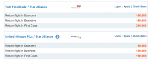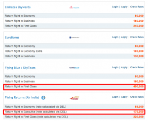 En classe affaires le gagnant est Turkish Airlines (Star Alliance) à 70.000 miles seulement et le plus cher est Air India (Star Alliance) à 175.000 miles.
