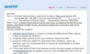 Une semaine avant notre séjour AirBnB nous a envoyé un rappel de notre réservation. On note encore une partie écrit en anglais.