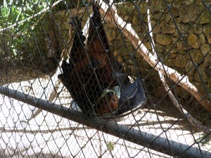 A l’entrée, il y a une grande fosse bien aménagée avec des crocodiles qui se reposent paisiblement, un petit kiosque pour faire des photos avec des bébés crocodiles et une petite boutique proposant à boire et quelques snacks. Ça met dans l’ambiance : ambiance conviviale et parc de qualité. Nous sommes chanceux car il y a assez peu de personnes au moment où nous y sommes allés. Après quelques mètres, on arrive devant une cage grillagée où se trouvent une dizaine de chauve-souris. Elles sont vraiment proches de nous, c’est impressionnant. Une mangeoire est située à 1m20 de hauteur environ collée au grillage, une chauve-souris mange gentiment ses morceaux de melon à seulement une dizaine de centimètres de nous. Heureusement, ces petites bêtes sont herbivores !