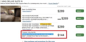 Le blog Loyalty Lobby montre des tarifs exceptionnels comme $144 (111 EUR) pour une suite au 5 étoiles Conrad à New York, une ville ou même des hôtels moyennes sont souvent hors de prix autour de Noël et nouvel an.